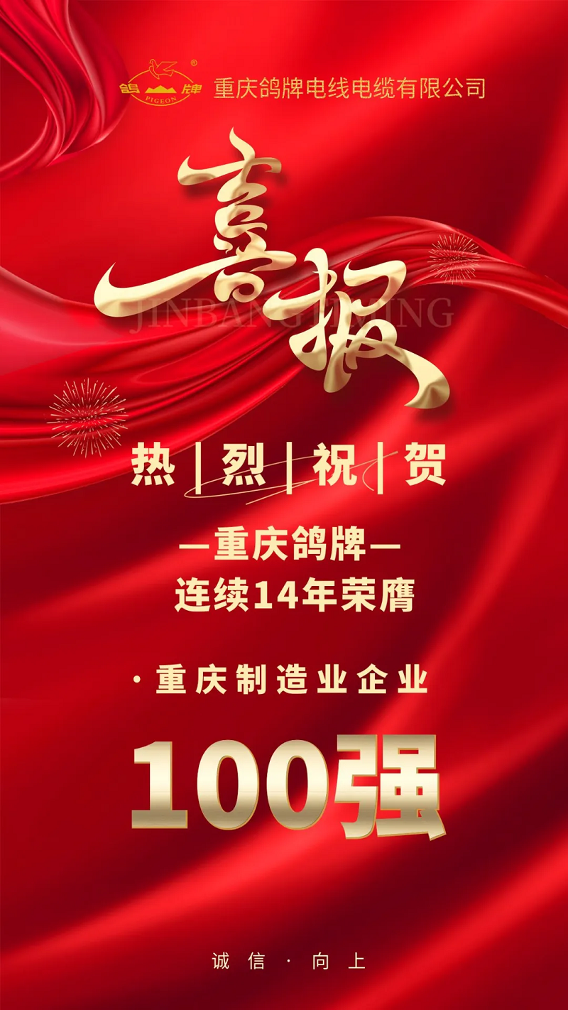 喜報丨鴿牌再次榮登重慶制造業(yè)百強榜單
