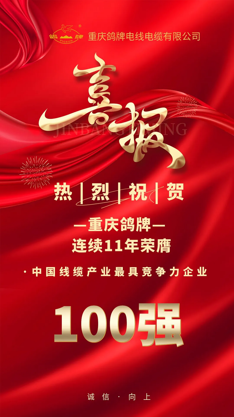 喜報(bào)丨鴿牌公司再度蟬聯(lián)中國(guó)線纜產(chǎn)業(yè)最具競(jìng)爭(zhēng)力企業(yè)百?gòu)?qiáng)